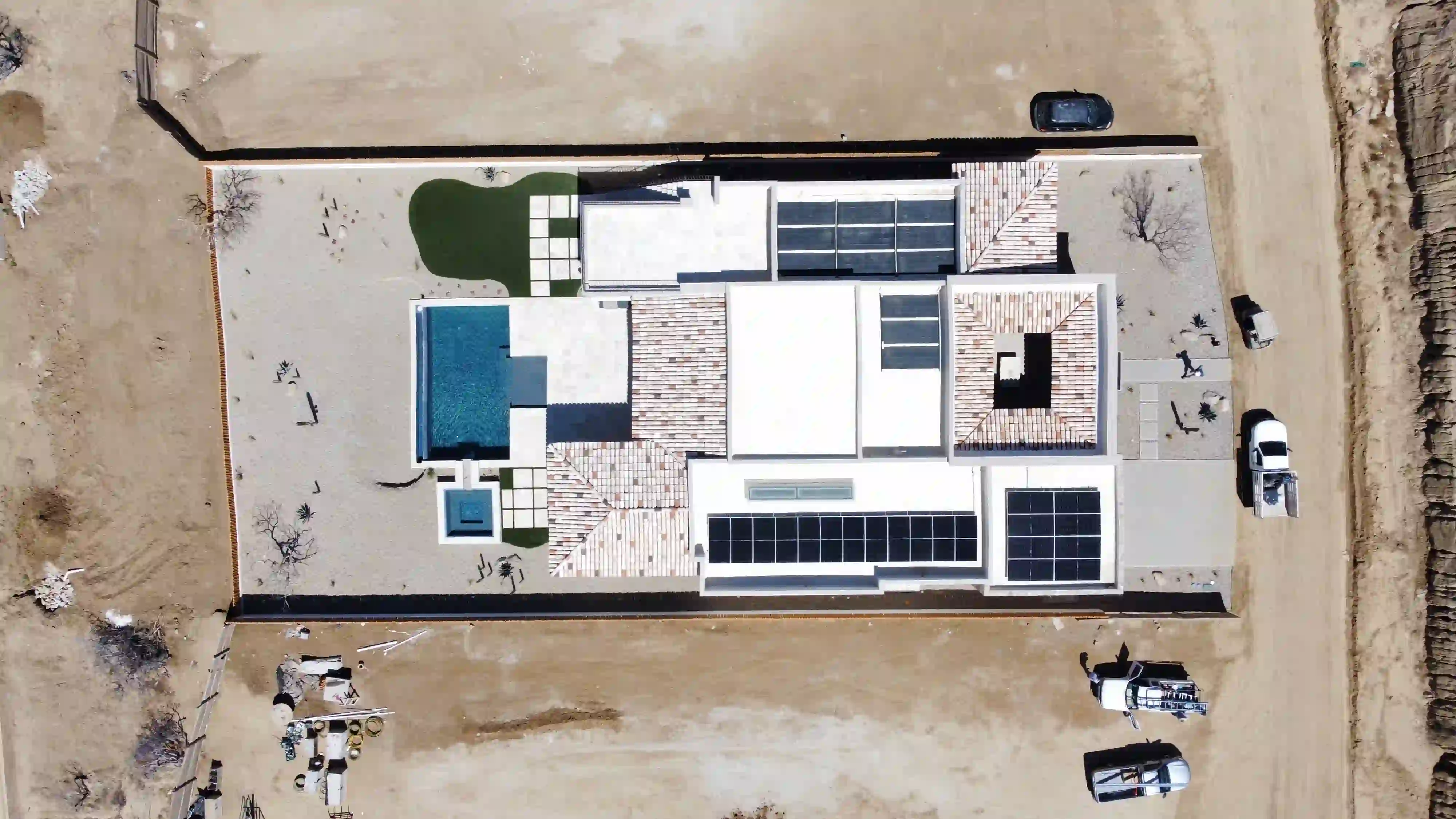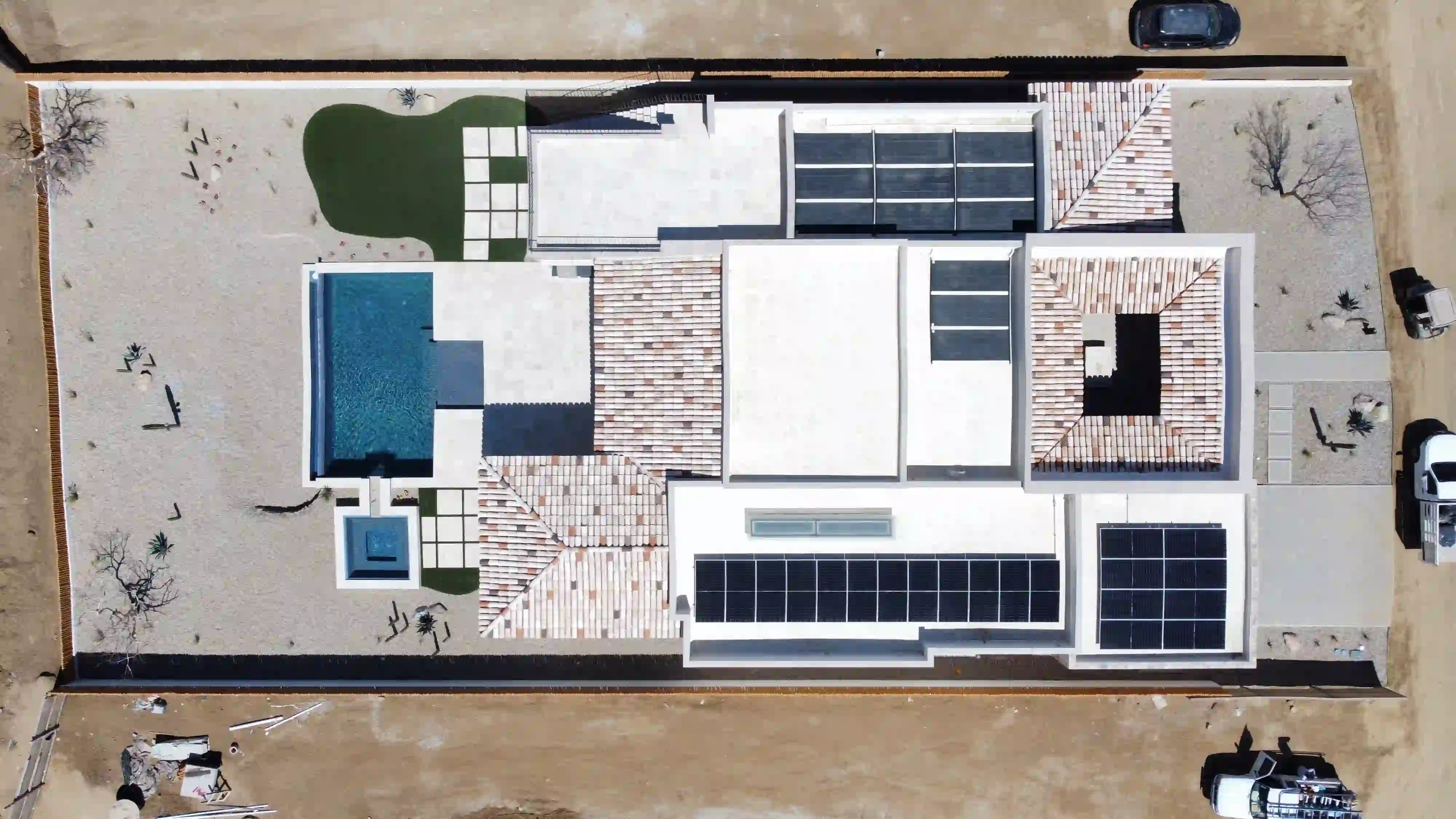 Sistema interconectado en el desarrollo Diamante. 20 paneles de 620W. Producción diaria de 50 kWh y ahorro del 65%.