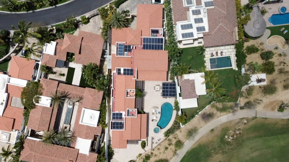 Tres fases de instalación en una de las comunidades más exclusivas de Los Cabos. Sistemas Cero Exportación con inversores Fronius. Reducción del 58% en facturación bimestral.